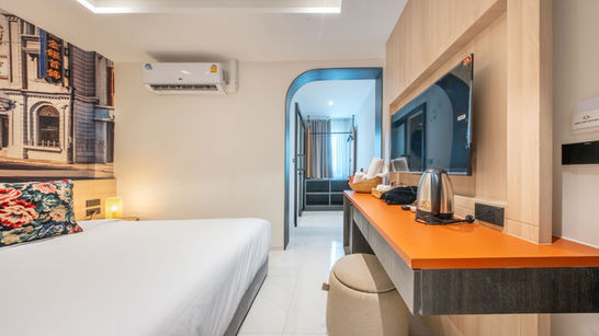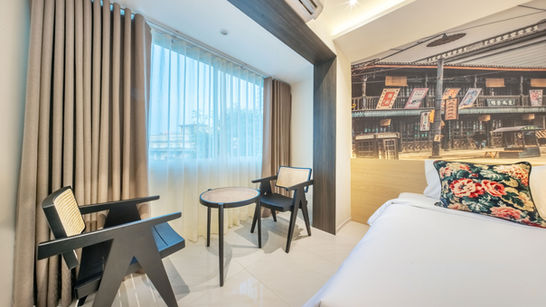 Our stylish Standard Room offers an inviting retreat, perfect for experiencing the vibrant energy of Bangkok's Chinatown. The design is a thoughtful blend of comfort and our signature "Shanghai New Age" aesthetic. A captivating, vintage-inspired feature wall adds unique character to the space.